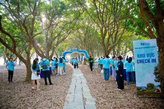 Ngay từ những phút đầu tiên, công tác đón tiếp được tổ chức bài bản và chỉn chu. Người tham gia được hướng dẫn check-in, nhận áo team, phân chia đội nhóm và làm quen với không khí chương trình.